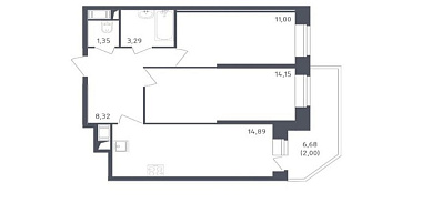 14.89 м2