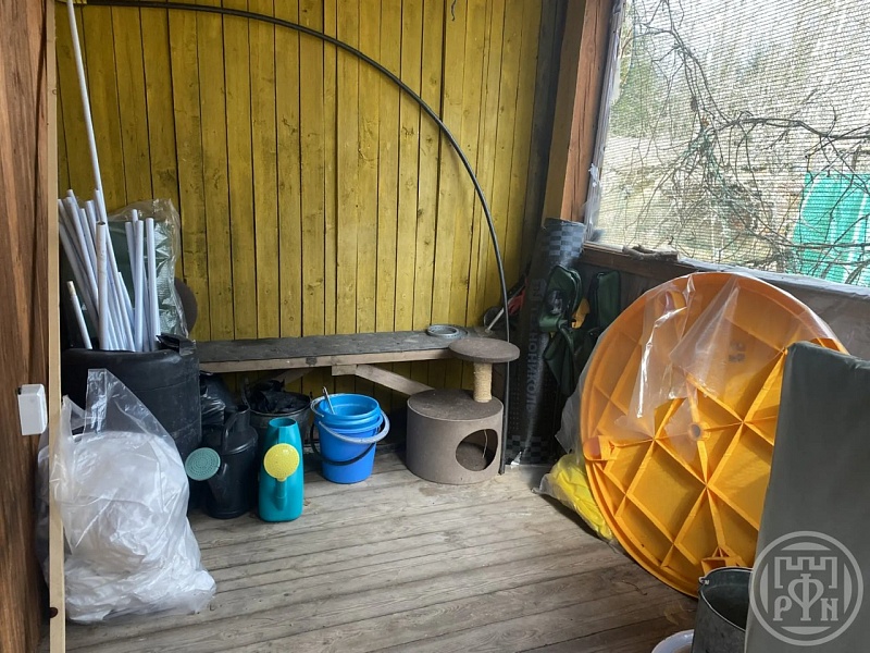 На участке колодец, туалет, летний душ, место для автомобиля, мангал для шашлыка, парник (каркас), фруктово-ягодные посадки и много места для отдыха или грядок (на выбор), на 1/3 участка специально оставлен лес. У соседей тоже 12 соток и тоже оставлен кусок леса, поэтому соседние дома не перед глазами.