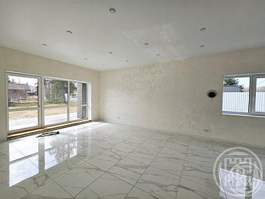 Размер комнат- 11,08+11,08+17,72+22,12 -гостинная,  2 санузла. Комфортная кладовая смежная с кухонной зоной. Внутри без отделки, готовы дополнительно сделать( все на встрече). Все мелочи по наружке- будут сделаны. Крытая терраса – 20 кв.м. покрытие террасы - импрегнированная доска.